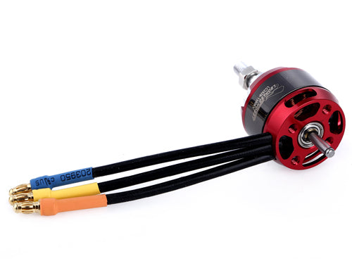 Leopard LC-series brushless motors feature an extended shaft which protrudes out the rear of the motor. This allows the user flexible mounting options without having to disassemble the motor to reverse the shaft. The user can either (1) mount the motor in a traditional manner against the front of a firewall and use the included bolt-on prop adapter, or (2) mount it against the rear of the firewall with the shaft extending forward. This mounting option is most common in sailplanes or racer-style models. For front-mounting applications, you can use the included prop saver with rubber retaining bands or supply your own collet-style adapter or spinner.